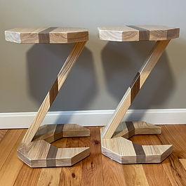 ash & walnut end tables, 2' tall w/ 13" octagonal top surface
